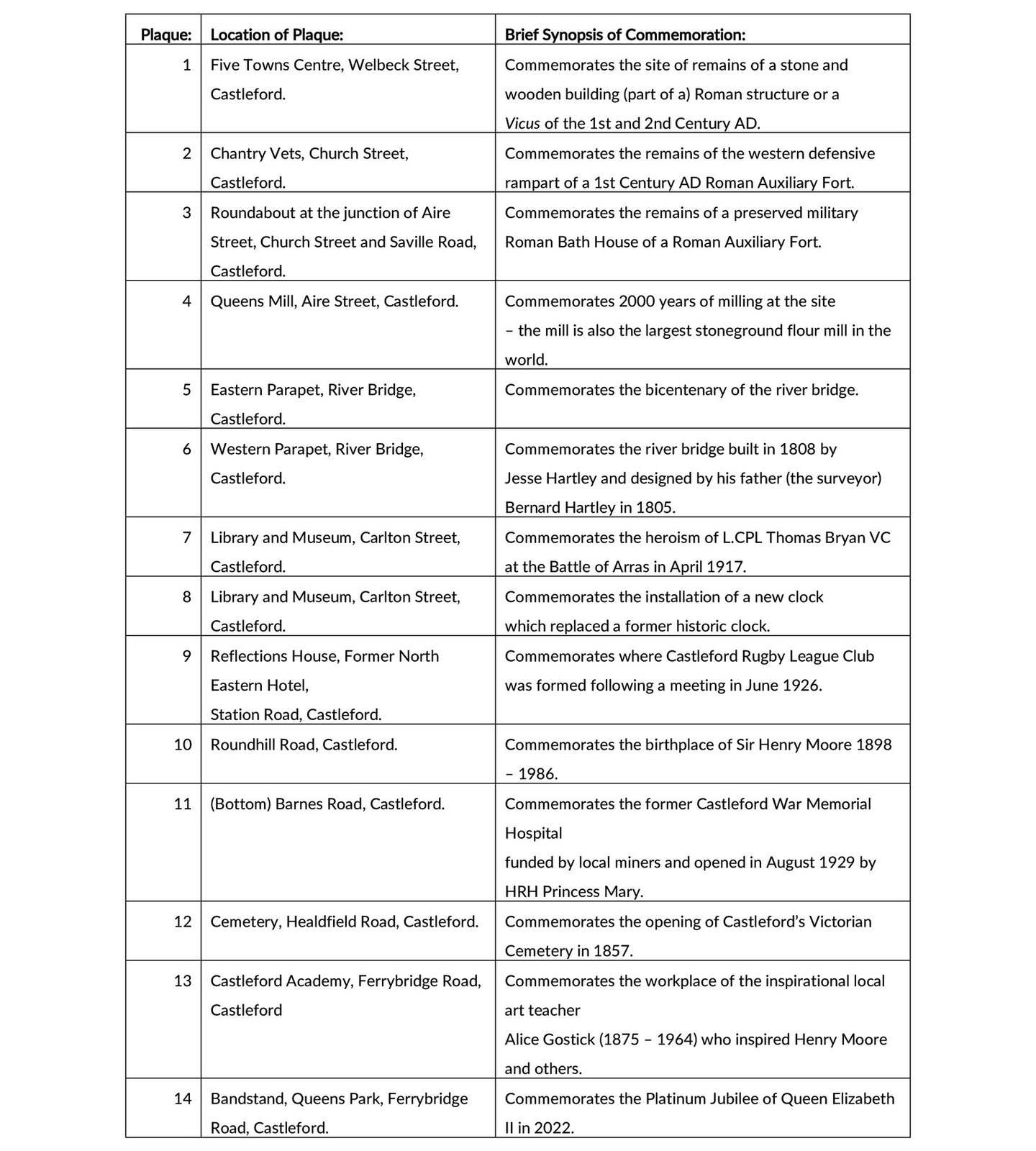 Blue Civic Plaques in Castleford